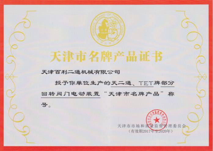 部分回轉(zhuǎn)閥門(mén)電動(dòng)裝置名牌產(chǎn)品證書(shū)