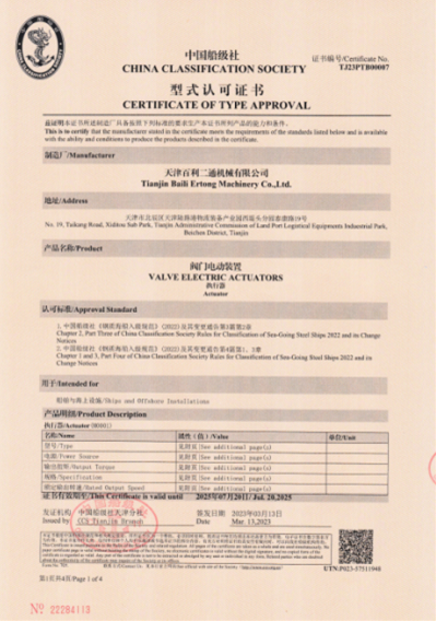 中國(guó)船級(jí)社型式認(rèn)可證書(shū)