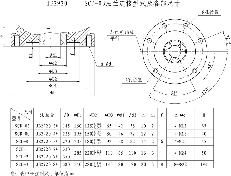 SCD-04~4 GB法蘭與牙嵌連接輸出軸各部尺寸