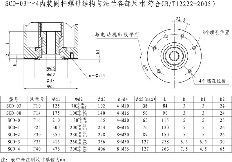 SCD-04~4內(nèi)裝閥桿螺母結(jié)構(gòu)與法蘭各部尺寸