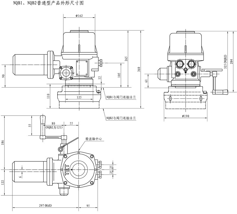 NQB1、 NQB2 電動裝置在繼承QB1、QB2 優(yōu)點(diǎn)的同時(shí)又增設(shè)了產(chǎn)品的使用功能,并且改進(jìn)了控制機(jī)構(gòu)。通過改型設(shè)計(jì)的 NQB1、NQB2 電動裝置不僅提高了整體性能并且更實(shí)用、可靠。 NQB1、 NQB2 電動裝置的定位仍為經(jīng)濟(jì)型,它適用于小口徑球閥、蝶閥、旋塞閥等閥瓣工作中90°回轉(zhuǎn)閥門和類似機(jī)構(gòu)的控制。該產(chǎn)品與閥門組合后可廣泛地應(yīng)用于石油、化工、電力、市政、冶金、食品、輕工等工業(yè)領(lǐng)域的管道控制系統(tǒng)。
