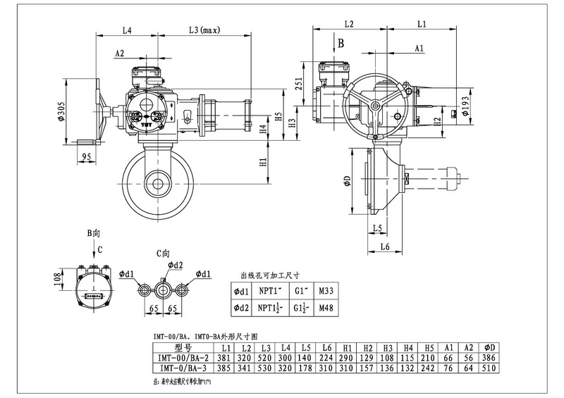 IMT/BA系列智能型電動裝置是IMT系列中小轉矩多回轉智能型電動裝置與BA圓錐齒輪減速器的一種組合型式,它適合閘閥、截止閥等多回轉閥門的驅動控制。IMT/BA智能型電動裝置具有以下特點:以較小轉矩規(guī)格的IMT電動裝置與BA減速器組合可獲得更大的輸出轉矩。在輸出轉速允許的條件下,選用該產(chǎn)品能夠提高所選電動裝置規(guī)格的通用性,便于產(chǎn)品的使用、維護。