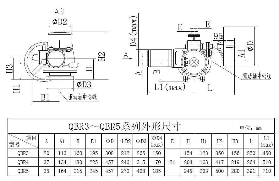 QBR3~QBR5是我公司研制的部分回轉(zhuǎn)閥門電動(dòng)裝置,控制轉(zhuǎn)矩范圍:900N.m~12000N.m。該電動(dòng)裝置可與球閥﹑蝶閥等閥瓣做90°回轉(zhuǎn)的閥門組合成電動(dòng)閥門,其功能是控制閥門的啟閉。該電動(dòng)裝置能夠進(jìn)行單機(jī)或多機(jī)室內(nèi)控制遠(yuǎn)距離控制電動(dòng)操作和現(xiàn)場手動(dòng)或電動(dòng)操作,可廣泛地應(yīng)用在具有管道閥門的工業(yè)系統(tǒng)。該產(chǎn)品的防護(hù)等級為IP67,隔爆型產(chǎn)品(型號中有Ex)的隔爆等級 為dⅡBT4。