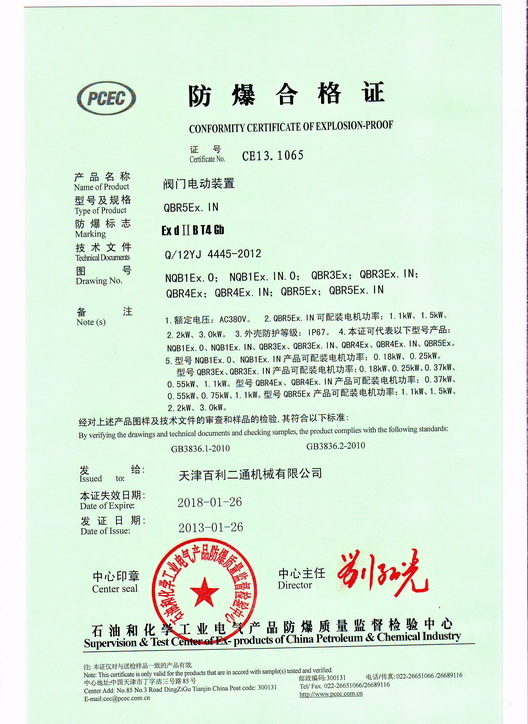 QBR3-5Ex Conformity Certification of Explosion-proof