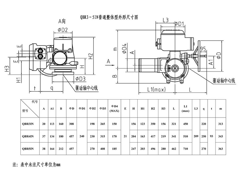 QBR3~QBR5是我公司研制的部分回轉(zhuǎn)閥門電動(dòng)裝置,控制轉(zhuǎn)矩范圍:900N.m~12000N.m。該電動(dòng)裝置可與球閥﹑蝶閥等閥瓣做90°回轉(zhuǎn)的閥門組合成電動(dòng)閥門,其功能是控制閥門的啟閉。該電動(dòng)裝置能夠進(jìn)行單機(jī)或多機(jī)室內(nèi)控制遠(yuǎn)距離控制電動(dòng)操作和現(xiàn)場手動(dòng)或電動(dòng)操作,可廣泛地應(yīng)用在具有管道閥門的工業(yè)系統(tǒng)。該產(chǎn)品的防護(hù)等級為IP67,隔爆型產(chǎn)品(型號中有Ex)的隔爆等級 為dⅡBT4。a
