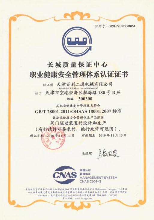 公司于2016年10月取得了ISO14001環(huán)境管理體系認(rèn)證和OHSAS18001職業(yè)健康安全管理體系認(rèn)證,完善了三個體系認(rèn)證。企業(yè)進行三個體系的認(rèn)證世界性的趨勢,是企業(yè)參與國際貿(mào)易、提高自身競爭的自覺要求,也是企業(yè)遵法守信、誠實負(fù)責(zé)的體現(xiàn)形式。