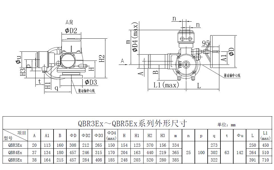 QBR3~QBR5是我公司研制的部分回轉(zhuǎn)閥門電動裝置,控制轉(zhuǎn)矩范圍:900N.m~12000N.m。該電動裝置可與球閥﹑蝶閥等閥瓣做90°回轉(zhuǎn)的閥門組合成電動閥門,其功能是控制閥門的啟閉。該電動裝置能夠進行單機或多機室內(nèi)控制遠距離控制電動操作和現(xiàn)場手動或電動操作,可廣泛地應用在具有管道閥門的工業(yè)系統(tǒng)。該產(chǎn)品的防護等級為IP67,隔爆型產(chǎn)品(型號中有Ex)的隔爆等級 為dⅡBT4。