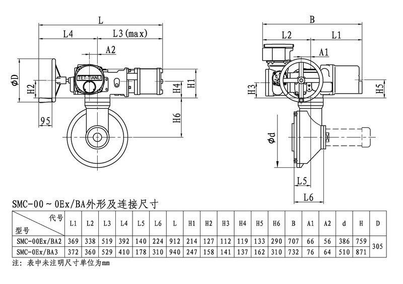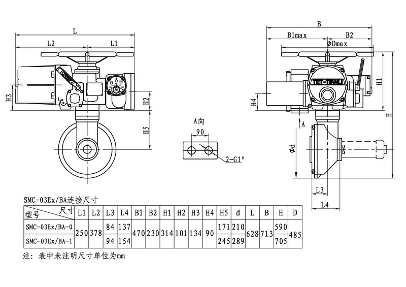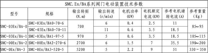 SMC/BA系列電動裝置是SMC系列中小轉矩多回轉電動裝置與BA圓錐齒輪減速器的一種組合型式,它適合閘閥、截止閥等多回轉閥門的驅動控制。SMC/BA電動裝置具有以下特點:以較小轉矩規(guī)格的SMC電動裝置與BA減速器組合可獲得更大的輸出轉矩。在輸出轉速允許的條件下,選用該產品能夠提高所選電動裝置規(guī)格的通用性,便于產品的使用、維護。